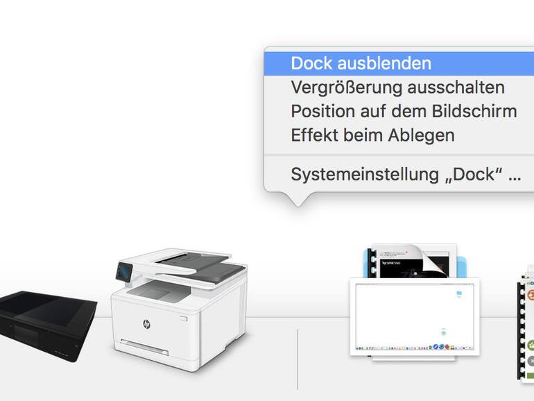 (Bild: Screenshot) Bei Bedarf können Sie das Dock automatisch ausblenden lassen. Klicken Sie dazu mit der sekundären Maustaste (Rechtsklick) auf die Trennlinie rechts im Dock und wählen Sie den Eintrag „Dock ausblenden“.