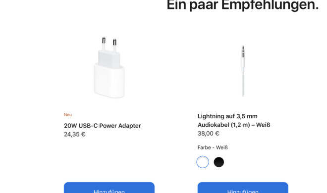 Bei der Bestellung im Apple Online Store wird man auf dem Weg zur Kasse auf ein kleines Accessoire aufmerksam gemacht. Apple hat nämlich ein Lightning-auf-3,5-mm-Klinkenstecker-Kabel im Angebot. Jedoch kostet dieses knapp 40 Euro, erlaubt aber, dass du die AirPods Max an Geräte ohne USB-C-Port oder Bluetooth anschließen kannst.
