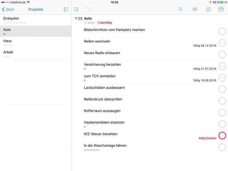 Auf der anderen Seite können gute To-do-Apps aber vor allem dabei helfen, Zeit zu sparen. Wiederkehrende Aufgaben – wie etwa das Überweisen von Versicherungsbeiträgen – tragen sich auf Wunsch in einem definierten Intervall automatisch erneut in das Projekt ein.