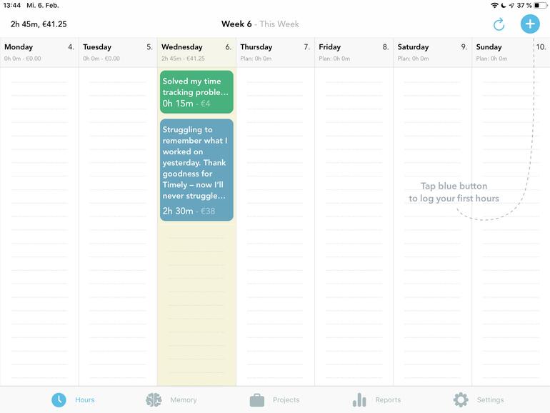 Timely bietet einen kostenfreien 14-tägigen Testzugang an. Registrieren Sie sich und installieren Sie die entsprechende App auf Ihrem iPad. Nach dem Einloggen erwartet Sie obiges Arbeitsfenster.