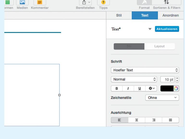 Probieren Sie es aus. Wählen Sie eine von Apples Vorlagen mit Tabellen und Bildern, tragen Sie eigene Werte ein und klicken anschließend verschiedene Elemente wie Fotos, Überschriften oder Diagramme an. Rechts wird sich jeweils die Format-Spalte ändern und nur Werkzeuge und Optionen anzeigen, mit denen Sie die Elemente anpassen können, die Sie ausgewählt haben.