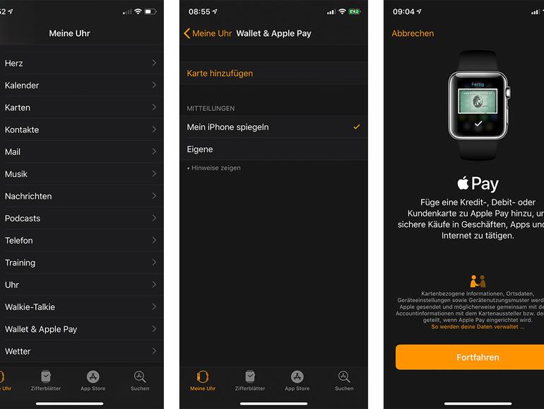 Hinweis: Apple Pay ist auf allen Apple-Watch-Modellen verfügbar.
