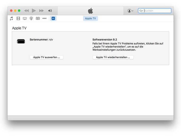 Schritt 1: Stelle erst einmal sicher, dass du deinen Apple TV 4 mit deinem Mac beziehungsweise Windows-PC per USB-C-Kabel verbunden hast. Auf dem Mac sollte sich nun iTunes öffnen und dir deine Set-Top-Box anzeigen.
