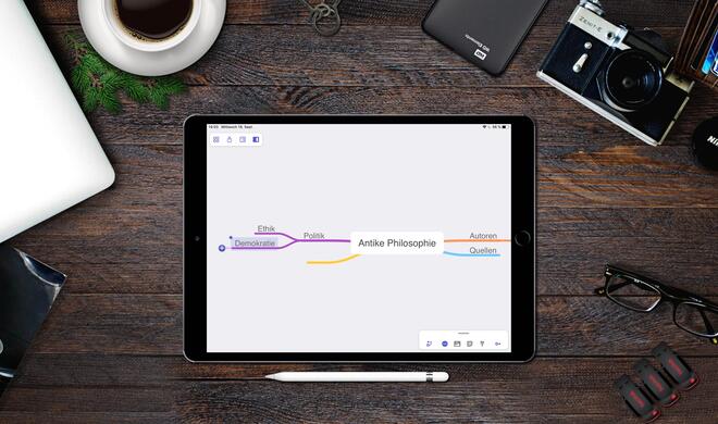 Visuelles Denken. Mind-Maps sind eine intuitive Art zum Brainstormen und Lernen. Besonders für Menschen, denen das am leichtesten auf visuellem Wege fällt. Mit MindNode 6 können Sie auch auf dem iPad digitale Mind-Maps erstellen. Die Bedienung geht dabei leicht von der Hand. Mit wenigen Gesten und Eingaben erstellen Sie auch komplexe Mind-Maps. Diese können Sie anschließend als Dateien exportieren. Die Vollversion können Sie 14 Tage lang kostenlos nutzen, danach ist ein einmaliger In-App-Kauf für rund 17 Euro nötig.