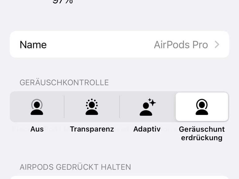 Eine weitere Hörhilfe stellt die aktive Geräuschunterdrückung der AirPods dar. Mit dieser Funktion können deine Kopfhörer Störgeräusche in der Umgebung reduzieren, sodass du Musik, Podcasts, Hörbüchern, Filmen und Telefonaten in deinen Kopfhörern besser folgen kannst. AirPods Pro und AirPods Max liefern durch ihre abdichtende Kopfhörerform die beste Kombination aus aktiver und passiver Geräuschunterdrückung. Die neuen AirPods 4 mit aktiver Geräuschunterdrückung bringen diese Funktion erstmals in die offene Trageform der regulären AirPods. Um die aktive Geräuschunterdrückung der AirPods im Alltag zu nutzen, bietet Apple einige praktische Einstellungen. Besonders die adaptive Geräuschkontrolle ist hilfreich, da diese automatisch wichtige Geräusche in der näheren Umgebung durchlässt, aber weiterhin störenden Lärm abschirmt. Auch die Konversationserkennung ist nützlich, denn damit erkennen deine AirPods 4 mit ANC und AirPods Pro 2 automatisch, wenn du dich mit jemandem unterhalten möchtest, und reduzieren dann die Geräuschunterdrückung.