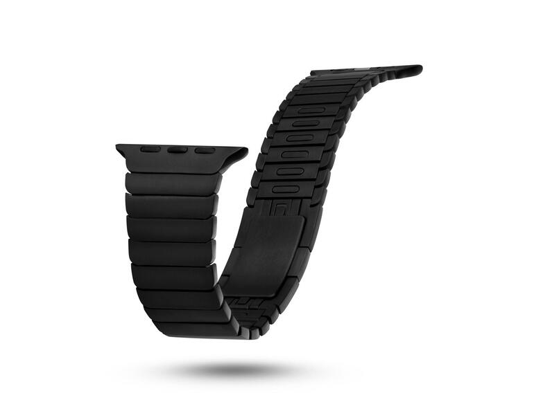 Die Vorteile liegen sprichwörtlich auf der Hand, oder eher auf dem Handgelenk: Der Edelstahl fühlt sich gut auf der Haut an, das Armband kratzt und drückt nicht und rostet nicht bei Wasserkontakt. Es hält sicher jeder Alltagssituation stand und kann ohne Werkzeug in der Größe verstellt werden; einzelne Glieder können herausgenommen oder neue Elemente hinzugefügt werden. Der Butterfly-Verschluss lässt sich perfekt weich und schnell öffnen, das minimalistische Design passt zudem perfekt zu Apples moderner Uhr.
