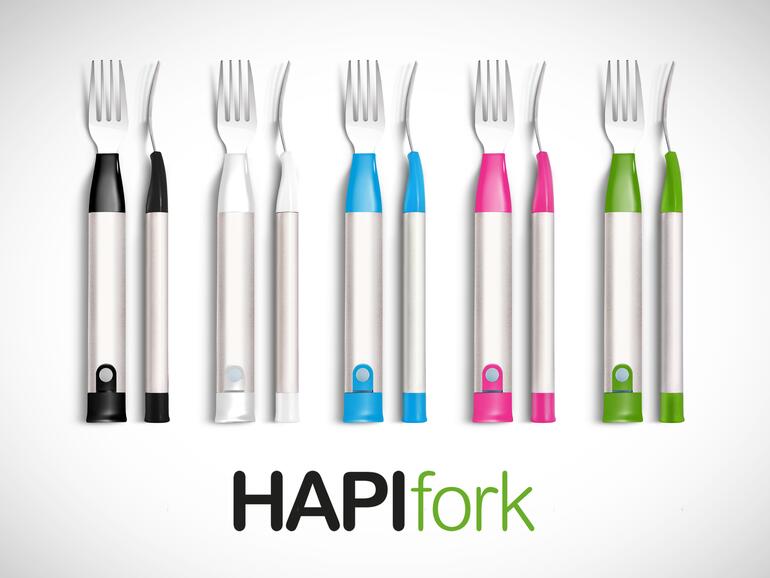 Na, wenn das nicht die perfekte Erfindung ist: eine Gabel, die die Gabelfüllungen pro Minute, die Intervalle dazwischen und die gesamte Ess-Zeit misst. So kann die HAPIfork gezielt mit einem leichten Vibrieren signalisieren, dass man das Essen gerade zu schnell in sich reinschaufelt. Das führt nicht nur dazu, dass man sich gesünder ernährt, sondern auch bewusster isst und leichter abnimmt.