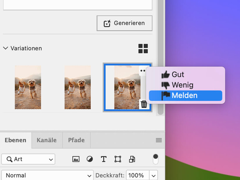 Generative Füllung: Ganze Bilder oder Bildelemente erstellen und entfernen