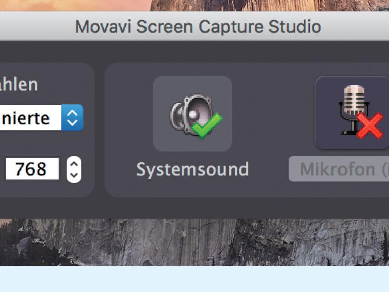 Im mittleren Teil können Sie festlegen, welche Audioquellen Eingang in Ihre Bildschirmaufnahme finden sollen. Sie können Systemsounds und Mikrofonaufnahme getrennt voneinander aktivieren.