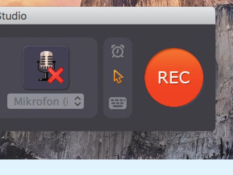 Rechts davon finden Sie Schalter, um das Aufzeichnen von Mausklicks und Tastenanschlägen zu aktivieren, einen Timer für den Aufnahmestop zu setzen und natürlich die Taste „Rec“ zum Start der Aufnahme.