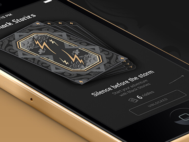 (Bild: Łukasz Frankiewicz) Black Stories: Łukasz Frankiewicz zeigt ein App-Konzept für das gleichnamige Kartenspiel mit wunderhübsch illustrierten Karten.