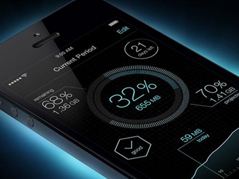 (Bild: Raven Yu) Data Usage App: So schön hätte schon unter iOS 7 eine App zur Darstellung der iPhone-Statistik aussehen können. Mockup von Raven Yu aus Hong Kong.
