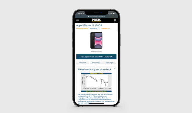 Nachdem du fleißig eine Liste mit Produkten erstellt hast, die du am Black Friday eventuell kaufen möchtest, solltest du nun die „Preissuchmaschine“ bemühen. Dort kannst du die aktuellen Preise einsehen und sogar den Preisverlauf der vergangenen Monate in deine Planung einbeziehen. Schreibe die (günstigsten) Preise in deine Liste, um am Schnäppchentag schnell zu sehen, ob es sich wirklich um ein gutes Angebot handelt oder nicht. Beispielsweise lag ein iPhone 11 kürzlich bei 570 Euro, während es aktuell wieder bei 660 Euro liegt.