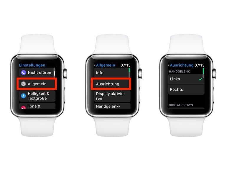 So ändern Sie die Displayausrichtung der Apple Watch am Handgelenk aus