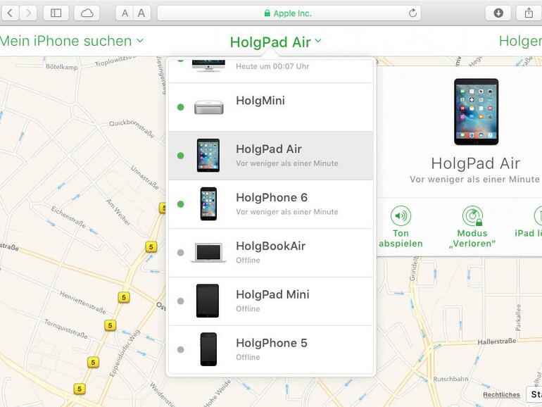 Als sehr praktisch kann sich der Webzugriff erweisen, wenn das iPhone oder iPad gestohlen wird oder man es schlicht verlegt hat. Über die iPhone-Suche, für die man sich gesondert authentifizieren muss, lässt sich sehr schnell von einem beliebigen Rechner aus das mit der iCloud-ID verknüpfte Gerät lokalisieren. Man kann einen nicht zu überhörenden Ton darauf abspielen oder das Gerät sperren und löschen. Zugegeben: Diese Funktion benötigt man nicht oft, aber für den Fall der Fälle sollte man zumindest wissen, wo man sie schnell finden kann. Das Webinterface von iCloud ist aber auch der richtige Ort, um die mit dem Account verknüpften Geräte zu verwalten und vor allem auch aus der Liste zu entfernen, wenn man sie weitergegeben oder verkauft hat.
