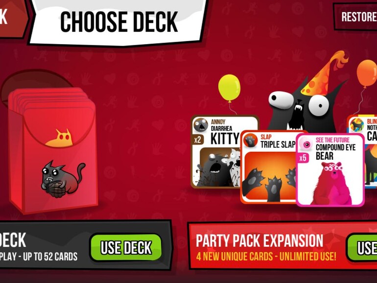 Wer bislang noch nichts von dem noch jungen Erfolgs-Spiel „Exploding Kittens“ gehört hat, schlage dies bitte umgehend nach! Alle anderen freuen sich über den iPhone-Ableger des physischen Kartenspiels. Das Grundspiel kostet 1,99 Euro, die Party-Erweiterung sowie weitere Avatare können nachgekauft werden. Gespielt werden kann mit bis zu fünf Freunden im lokalen Netzwerk. Das ist sinnvoll, denn man will seinen Kontrahenten ja sehen, wenn dieser eine „Exploding Kitten“ zieht. Neben einigen neuen Karten sind es besonders die irrwitzigen Sounds, durch die die mobile Version noch etwas mehr Spaß bringt als das Kartenspiel.