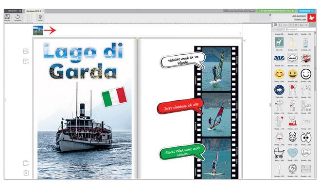 Mit den Stickern steht Ihnen eine riesige Menge an Schmuckelementen zur Verfügung. Sie sind thematisch gegliedert und können per Texteingabe gefiltert werden. Passen Sie die Sticker einfach individuell an und geben Sie eigene Texte ein oder verändern Sie die Sticker mit Ihren Fotos oder eigenen Farben.
