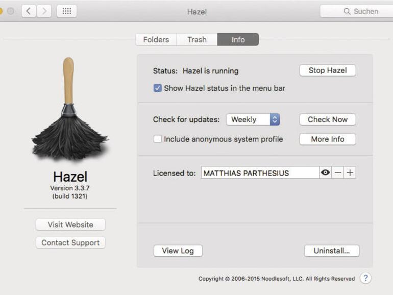 Hierbei handelt es sich um eine Systemerweiterung, mit der du bestimmte Ordner überwachen kannst. Nach einem Download etwa wandern Zip-Archive automatisch in einen eigenen Unterordner, während Installer-Dateien, die als Disk-Images ausgeliefert werden, in einem anderen Ordner abgelegt werden. Doppelte Downloads werden automatisch identifiziert. Auf diese Weise kann Hazel helfen, Ordnung zu halten. Die Systemerweiterung ist den eingebauten Ordner-Aktionen von OS X überlegen.