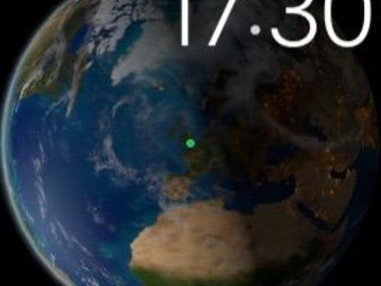 In der Karten-App kann man nicht so richtig weit hinaus zoomen. Wenn Sie viel um den Erdball reisen, lohnt sich vielleicht das Astronomie-Ziffernblatt, das Ihren aktuellen Standort als grünen Punkt auf dem Erdball anzeigt.
