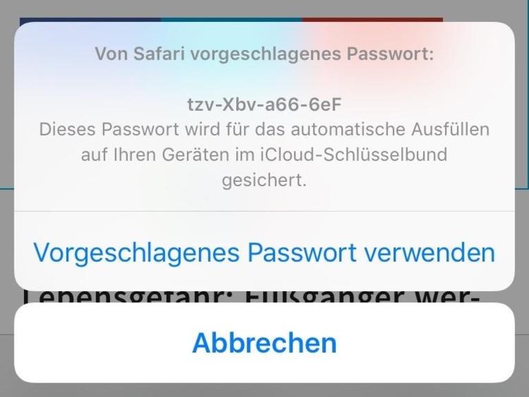 Wer sich bei einem Forum oder Portal anmelden will, muss das in fast allen Fällen per Benutzername und Passwort tun. Natürlich wählt man ein eigenes Passwort für jedes Portal, und das muss sicher sein. iOS schlägt hier eins vor, das sich verwenden lässt und sogleich in die Liste der Passwörter eingetragen ist.