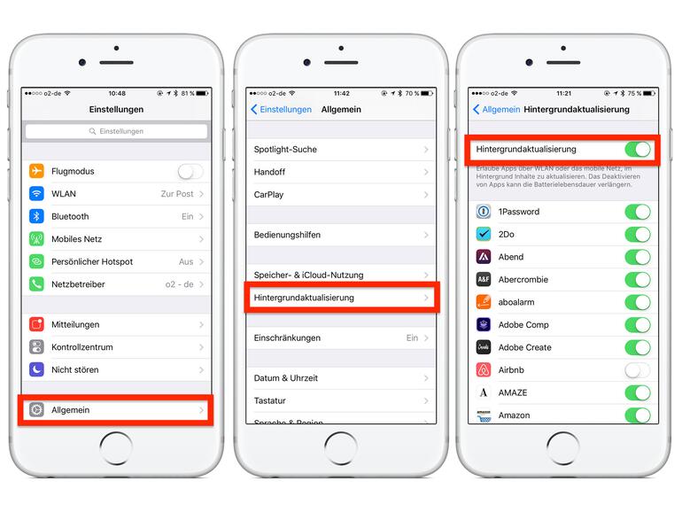 Damit Apps auf dem neuesten Stand sind, werden Sie im Hintergrund aktualisiert. Dies kostet nicht nur Datenvolumen, sondern auch Batterielaufzeit. Mit der Deaktivierung schlagen Sie zwar zwei Fliegen mit einer Klappe, aber dadurch benötigen die Apps einen Moment länger zum Starten, da die Daten erst frisch geladen werden müssen.