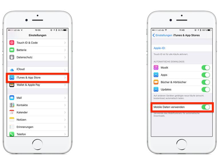 Sollten Sie mehrere Geräte mit einer Apple-ID verbunden haben, dann werden Apps, Musik und Bücher nach dem Kauf automatisch auf die anderen Geräte geladen. Dabei können Apps oder deren Updates im mobilen Datennetz den Verbrauch erhöhen. Um Datenvolumen sparen zu können, lassen sich diese automatischen Downloads auf die WLAN-Nutzung begrenzen.
