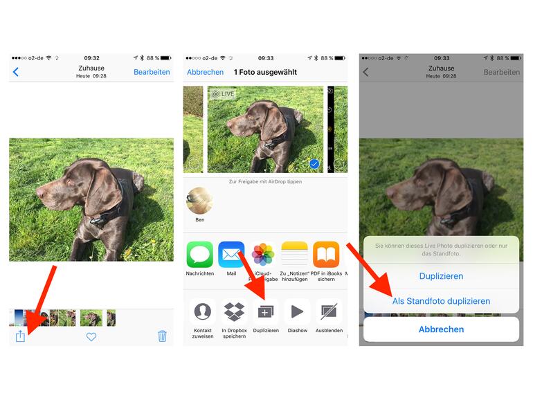 Tipp: Auf die gleiche Weise können auch Videos dupliziert werden. Deutlich interessanter ist der Vorgang aber für Live Photos. Denn sobalb man hier in Schritt 3 auf „Duplizieren" tippt, kann man das Live Photo auch als Standfoto kopieren.