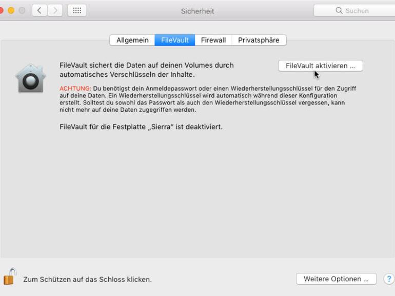 Effektiv: So geht maximaler Schutz für Ihre Daten am Mac mit Filevault (Bild: Screenshot) Schritt 1: