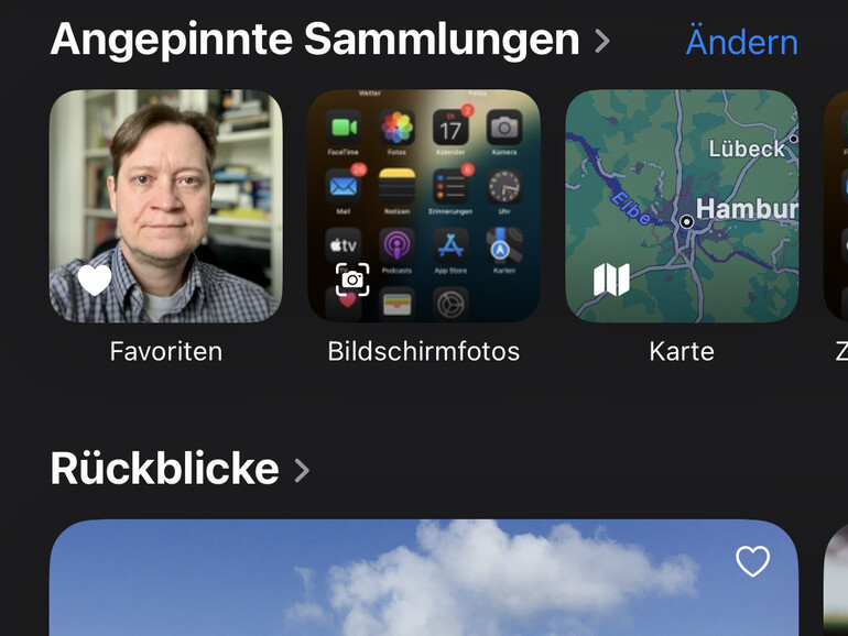 In „Angepinnte Sammlungen“ findest du übrigens auch Einträge für Favoriten, zuletzt gesicherte Fotos, die Kartenansicht auf der Basis der in den Fotos gespeicherten Ortsdaten und Videos. Du kannst hier ebenfalls Inhalt und Reihenfolge anpassen. Es stehen auch Personen und Haustiere, Reisen, Rückblicke und viele andere Bereiche zur Auswahl. So kannst du für dich wichtige Dinge sammeln und weit oben in der Oberfläche platzieren, ohne ihnen gleich einen eigenen Bereich einzuräumen.