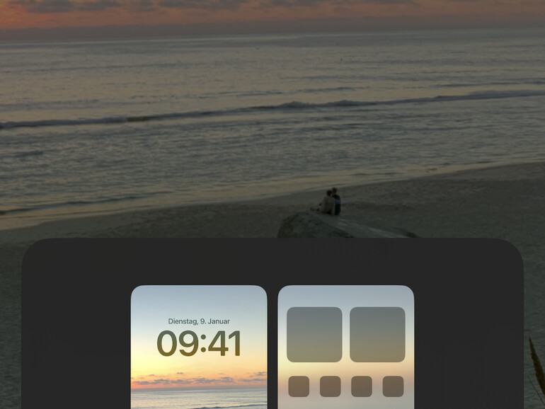Tippe auf „Fertig“, um den Sperrbildschirm mit deinem Foto zu aktivieren. Optional kannst du noch die Darstellung auf dem Home-Bildschirm bearbeiten.