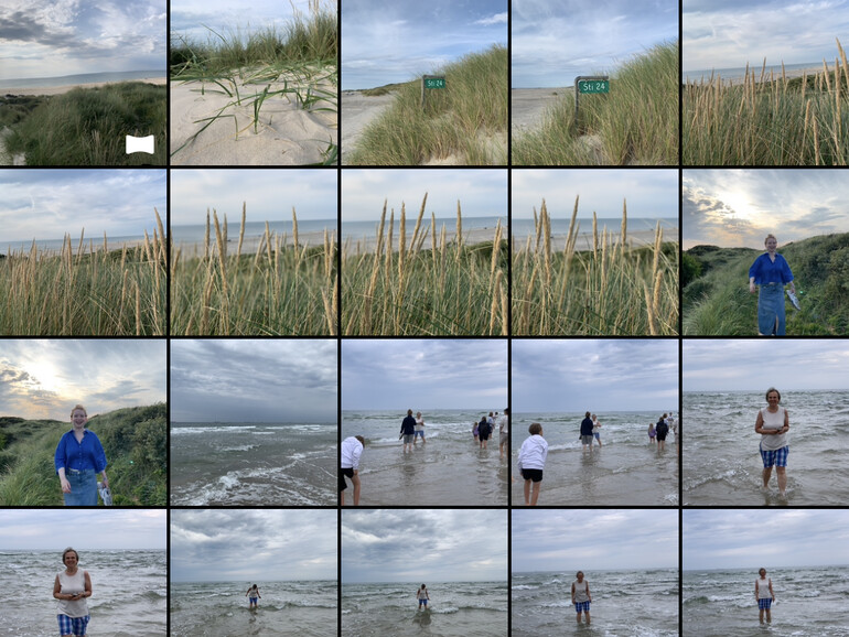 Schiebe die Mediathek nach unten, um die Anzeige nach Tagen, Jahren oder Monaten zu wählen. Tipps auf die Taste mit den zwei Pfeilen für weitere Optionen.