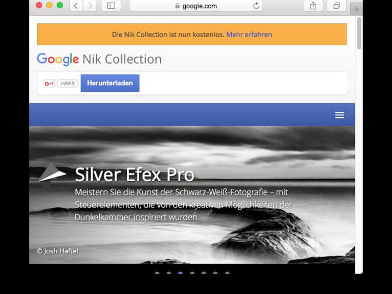 Was funktioniert, sind die Filter der Reihe NIK-Collection, die Google inzwischen unter [1] kostenlos zur Verfügung stellt. Diese ehemals 149 Euro kostende Sammlung benötigt allerdings ein installiertes Adobe Photoshop, Photoshop Elements oder Aperture von Apple für ihre Komplettinstallation. Da Affinity Photo nur zu den Adobe-Plug-ins kompatibel ist, hilft uns Aperture an dieser Stelle leider nicht weiter. Und damit du dir nicht erst eines der Adobe Programme kaufen musst, um in den Genuss der wirklich guten NIK-Collection zu gelangen, musst du einen Trick anwenden, um zum Ziel zu kommen: Das nötige Vorgehen erklären wir im Workshop „Photoshop-Filter installieren“.