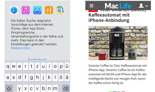 Safari ist unter OS X der standardmäßige Webbrowser. Auch bei iOS hat Apple keine Ausnahme gemacht. Apples Browser zählt zu den schnellsten und bietet einige coole Funktionen. So kann man über einen Klick auf das Quadrat mit dem Pfeil am unteren Bildschirmrand Seiten mit Anderen teilen, in den Notizen hinterlegen, als PDF umwandeln, als Favorit, Lesezeichen oder zur Leseliste hinzufügen, die Desktop-Seite anfordern und auch die Seite nach Begriffen durchsuchen. Alles mit einem einfachen Fingertipp.