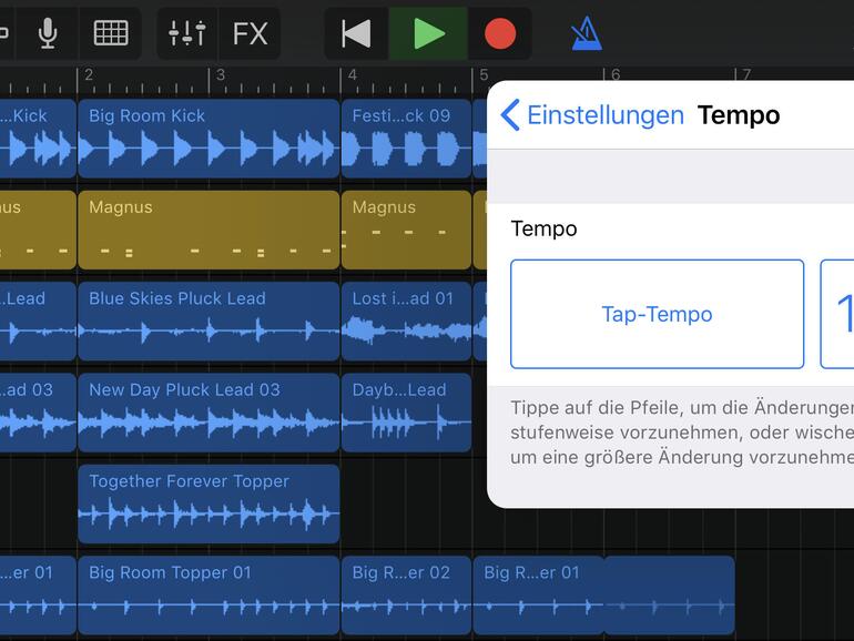 - Sie benötigen: Ein Gerät mit iOS 11, GarageBand 2.3 oder neuer und einen Song