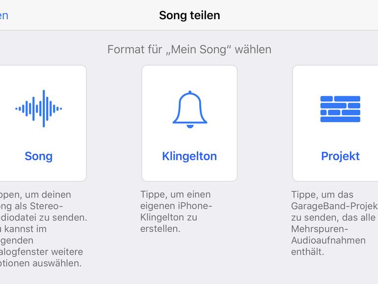 Wenn Sie Ihren Song auf dem iPad komponiert, den Klingelton aber auf dem iPhone haben möchten, müssen Sie ihn erst übertragen. Sind Sie bei iCloud angemeldet, sollten Sie den Song bereits sehen und laden können.