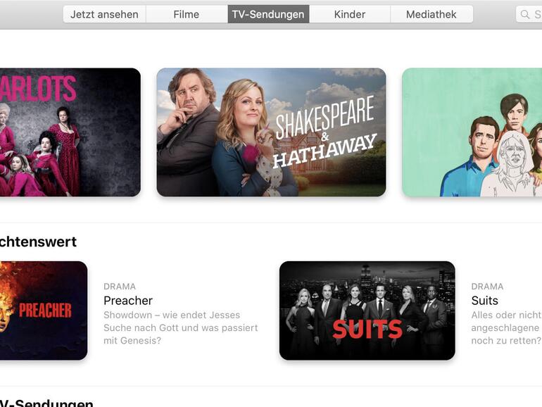 Doch auch ohne Abo bietet das Programm vor allem einen Blick auf das Angebot in Apples Store, wo man Filme und Serienfolgen kaufen oder leihen kann.