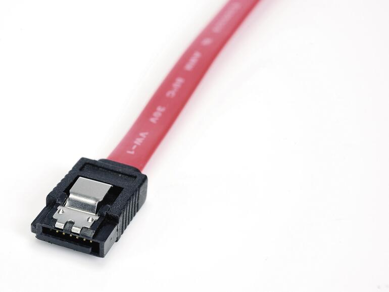 Serial ATA hat einen schwarzen Anschluss, ein rotes Kabel, ersetzt ATAPI und verbindet Festplatten mit einer höheren Geschwindigkeit.