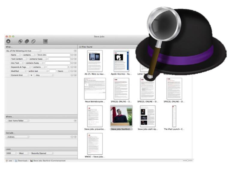 definierte Suchanfragen mit, beispielsweise nur nach Anwendungen, E-Mails, oder Musik. Die Bedienung von HoudahSpot ist, in der Tat bequemer und selbsterklärender als über den Finder von OS X. Ob dies allerdings den recht hohen Preis rechtfertigt, müssen Sie selbst entscheiden.