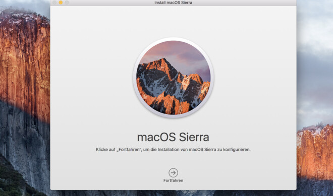 Je nach Internetverbindung kann der etwa 4,77-GB-große Download von macOS Sierra eine Weile dauern. Sobald er beendet ist, wird die Installationsdatei gestartet. Folgen Sie der Anleitung und beachten dabei, dass Sie im dritten Schritt die richtige Partition (für einen Test die neue, ansonsten Macintosh HD) auswählen. Klicken Sie dann auf „Installieren“ und folgen den Bildschirmanweisungen.