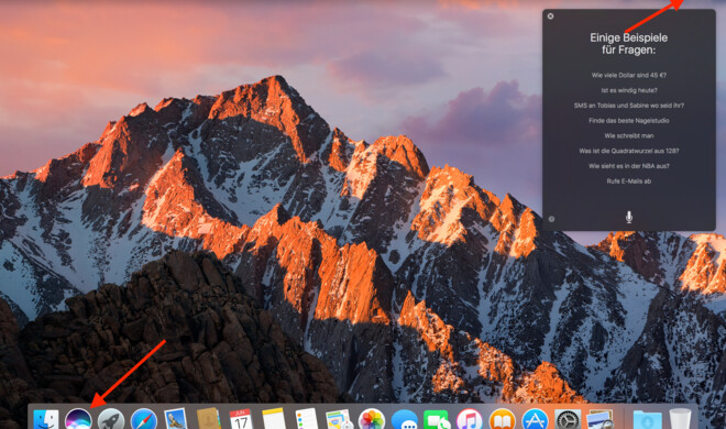 Das wohl größte Highlight in macOS Sierra ist Siri. Die intelligente und charmante Sprachassistentin steht mit dem Update endlich auch auf dem Mac bereit und hilft beim Versand von Nachrichten, der Suche von Dateien und bei anderen Aufgabe. Die Icons befinden sich dazu im Dock und in der Menüleiste. Ein einfacher Klick darauf genügt und schon ist Siri bereit.