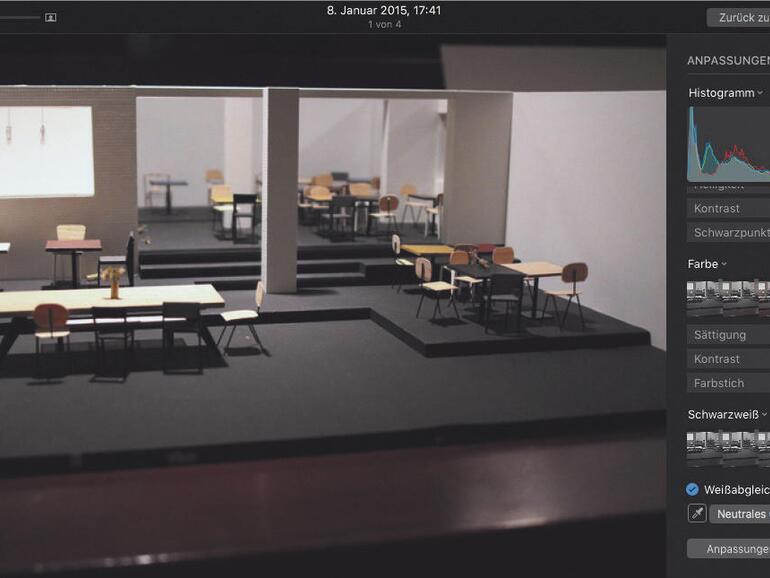 Der Weißabgleich von Fotos kann darüber entscheiden, ob das Bild gelungen ist oder nicht. Dabei ermittelt die Kamera einen Weißwert, anhand dessen sie alle anderen Farben berechnet. Gerade bei künstlichem Licht vertun sich aber viele Kameras, insbesondere Smartphones, gerne mit dem richtigen Weißton. Das Resultat sind fehlerhafte Farben, der berühmte „Gelbstich“ in Fotos, die bei normal beleuchteten Räumen auftreten. Mit Fotos können Sie dieses Problem recht einfach beheben: Wählen Sie aus den zusätzlichen Bearbeitungsoptionen unter „Anpassungen“ den Punkt „Weißabgleich“ und klicken Sie dort anschließend auf „Auto“. In der Regel schafft Fotos den Weißabgleich selbst, andernfalls können Sie die Pipette wählen und ein weißes oder hellgraues Element des Bildes anklicken. Danach ist der Gelbstich beseitigt.