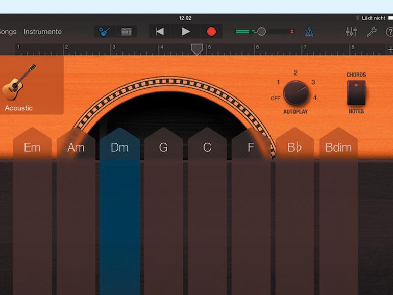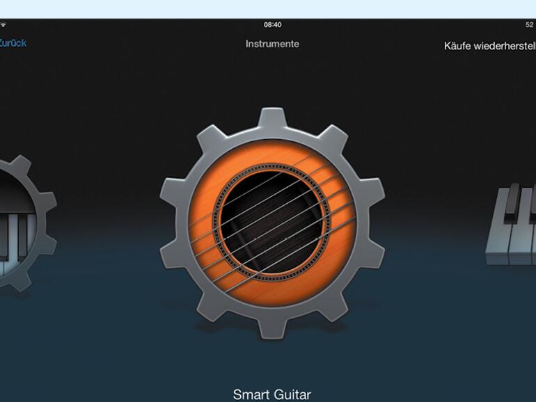 GarageBand gibt es auch als App für iPad, iPhone und iPod touch (4,99 Euro). Die App bringt so genannte smarte Instrumente mit. Diese können vollautomatisch Akkorde spielen. Sie wechseln sie mit nur einem Fingertipp. So lassen sich schnell und einfach überzeugende Melodien komponieren. Wie auf dem Mac arrangieren Sie am iPad einzelne Aufnahmen in unterschiedlichen Spuren zu einem Gesamtwerk. Dazu stehen Ihnen ebenfalls zusätzliche Loops sowie Filter zum Verfremden zur Verfügung. Ebenfalls möglich: der Anschluss einer Gitarre.