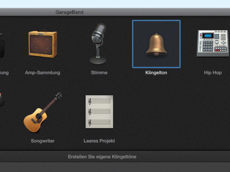 Prinzipiell könne Sie aus jedem Projekt heraus einen Teil der Musik als Klingelton exportieren. GarageBand bietet beim Programmstart aber auch ein spezielles Projekt dafür an.