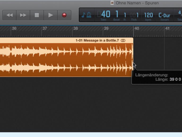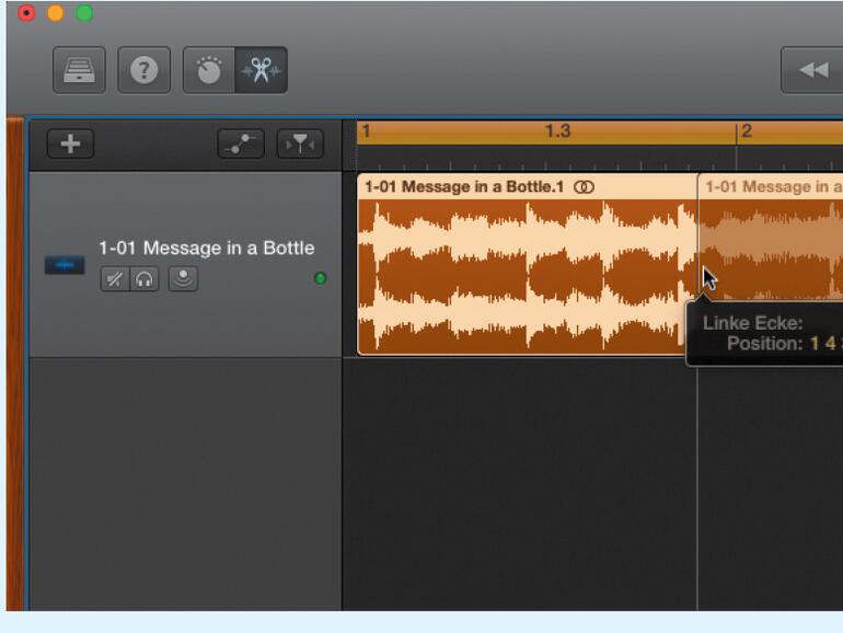 Ein Klingelton darf nicht länger als 40 Sekunden sein. Kürzen Sie die Spur, indem Sie das linke Spurende zum entsprechenden Startpunkt des Tons ziehen.