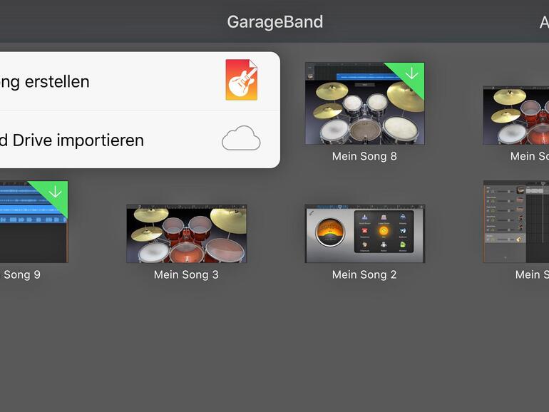 Nach dem Start landen Sie in der Songübersicht. Falls Sie schon mal GarageBand-Songs angefertigt haben, finden Sie diese hier versammelt. Andernfalls ist dieser Bereich leer. Ein Tipp oben rechts auf das Pluszeichen erzeugt einen neuen Song. GarageBand läuft auf iPhones und iPads. Auf dem großen Bildschirm macht es mehr Spaß, klein auf dem iPhone geht es aber zur Not auch.