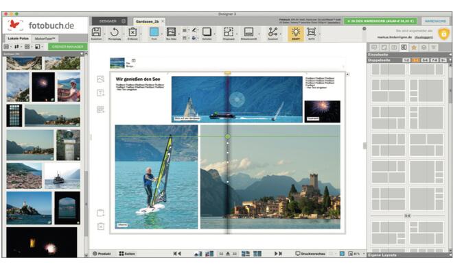 Sie können die Layouts natürlich auch auf Seiten ziehen, die schon Fotos enthalten. Dann berücksichtigt Designer 3 die vorhandenen Bilder und integriert sie in das neue Layout. Einmal auf die Seiten gezogene Layouts lassen sich natürlich individuell anpassen. Und noch besser: Sie können ihre individuelle Seitengestaltung auch als eigenes Layout speichern und so immer wieder neu verwenden.