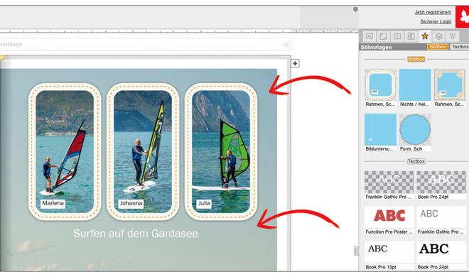 Mit Bildboxen geht es ebenso leicht: Auch hier gestalten Sie in Ruhe eine einzelne Bildbox und weisen Attribute wie Rahmen, Schatten, Masken oder Dekoelemente (siehe dazu "So einfach layouten Sie perfekte Texte im Fotobuch") zu. Wenn Sie die Box auf die Kreativ-Sidebar ziehen, erstellt Designer 3 eine Vorlage unter Bildbox-Stilvorlagen. Nun lässt sich jedes Bild im aktuellen Projekt (und auch in kommenden, denn die Stilvorlagen bleiben in Designer 3 gespeichert) einfach mit der Maus mit den Attributen versehen.