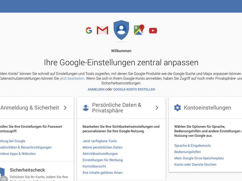 Wird man bei der Browser-Nutzung beziehungsweise der Verwendung von Google nicht direkt mit dem Fenster „Hinweis zum Datenschutz bei Google“ konfrontiert, kann man entsprechende Einstellungen, ohne bei Google angemeldet zu sein, auch unter https://myaccount.google.com und „Jetzt verfügbare Tools“ vornehmen. Die „My Account“-Seite („Mein Konto“) wurde von Google im Sommer 2015 eingeführt, um einen zentralen Anlaufpunkt für Datenschutzeinstellungen zu schaffen. Fragen und Antworten zu den von Google erfassten Daten findet man wiederum unter https://privacy.google.com/.