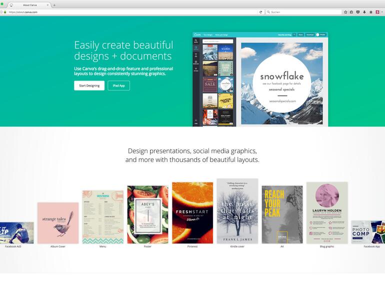 Canva können Sie sowohl als iOS-App als auch in Ihrem Webbrowser nutzen. Beide Versionen sind grundsätzlich kostenfrei – Sie können sie sogar mit bis zu zehn Kollegen und Freunden gemeinsam nutzen. Erst bei einem professionellen Gebrauch fallen monatliche Gebühren von 12 Euro an. In der kostenlosen Version ist aber eigentlich bereits alles vorhanden, was Sie für gut aussehende Ergebnisse benötigen.