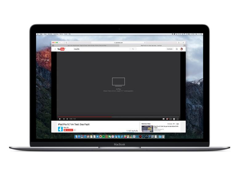 Tipp: Du kannst übrigens während der Wiedergabe weiter im Internet surfen oder andersweitig deinen Mac nutzen. Allerdings darfst das Tab mit dem YouTube-Video in Safari nicht schließen. Daneben ist auch die Steuerung des Videos vom Mac aus möglich und du kannst schnell die gewünscht Stelle auswählen. Alternativ funktioniert dies auch mit der Siri Remote auf die gewohnte Art und Weise.